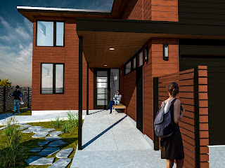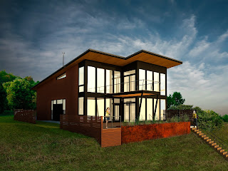 We have another updated look at the construction of the West Wind House. Below is a panorama of the house so far compared to the original drawing of the design.