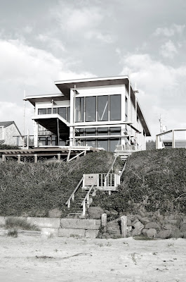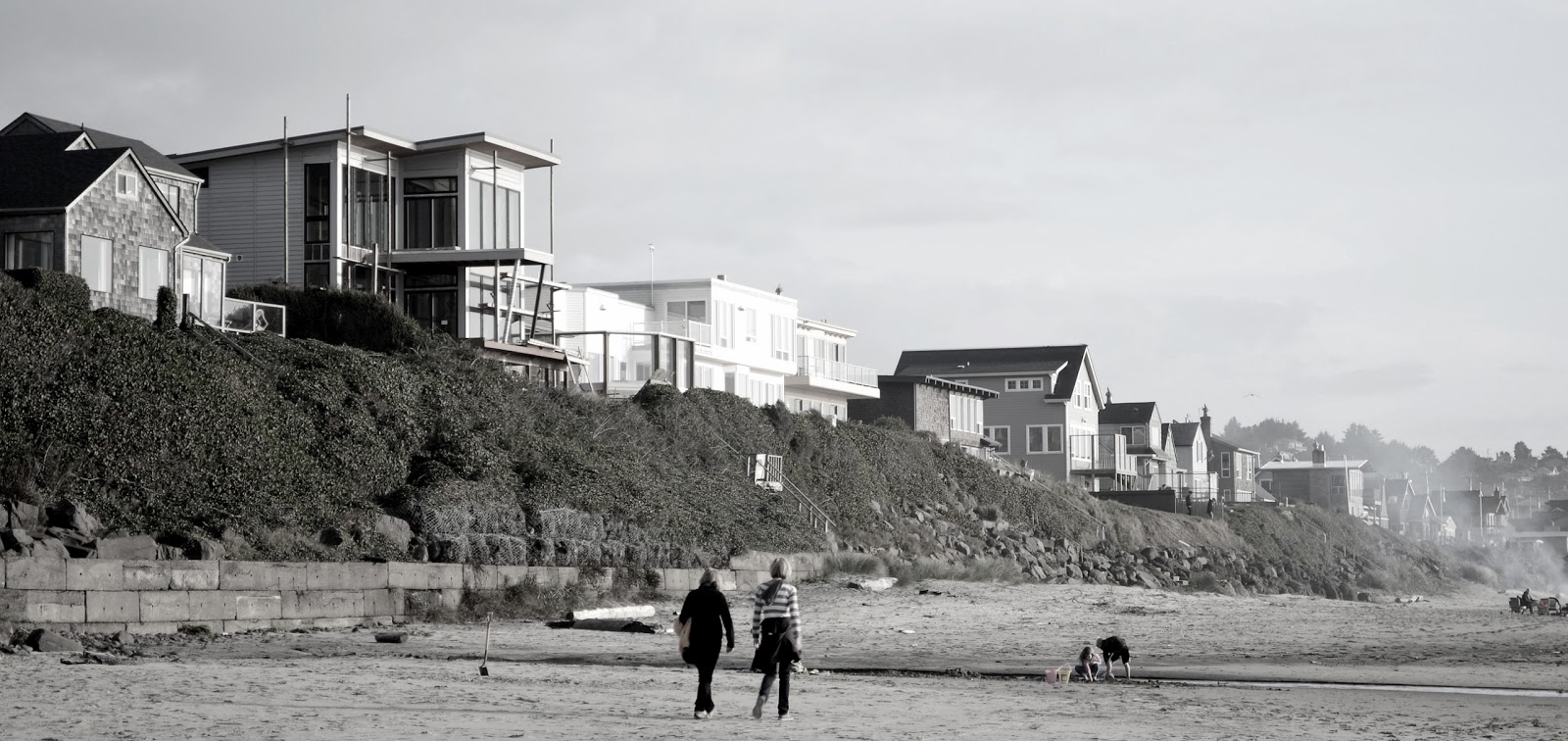 Looking down the beach at the row of houses